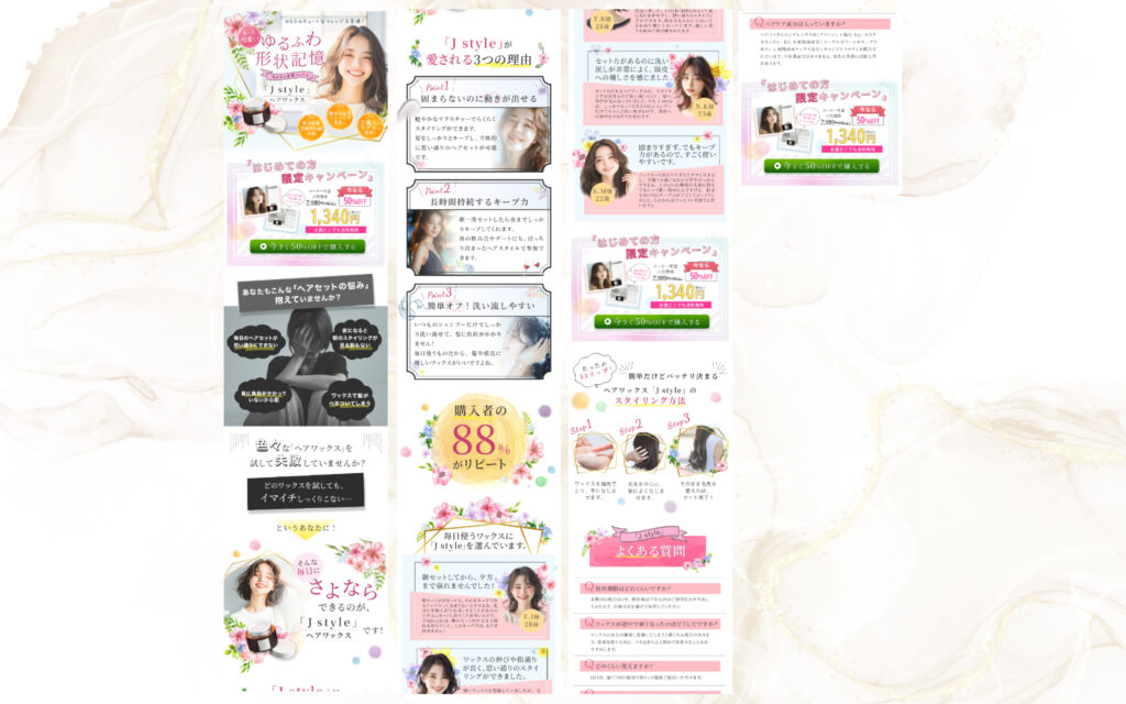 “今だけ50%OFF”が強調されるよう、ピンク×グリーンで視認性UP。
